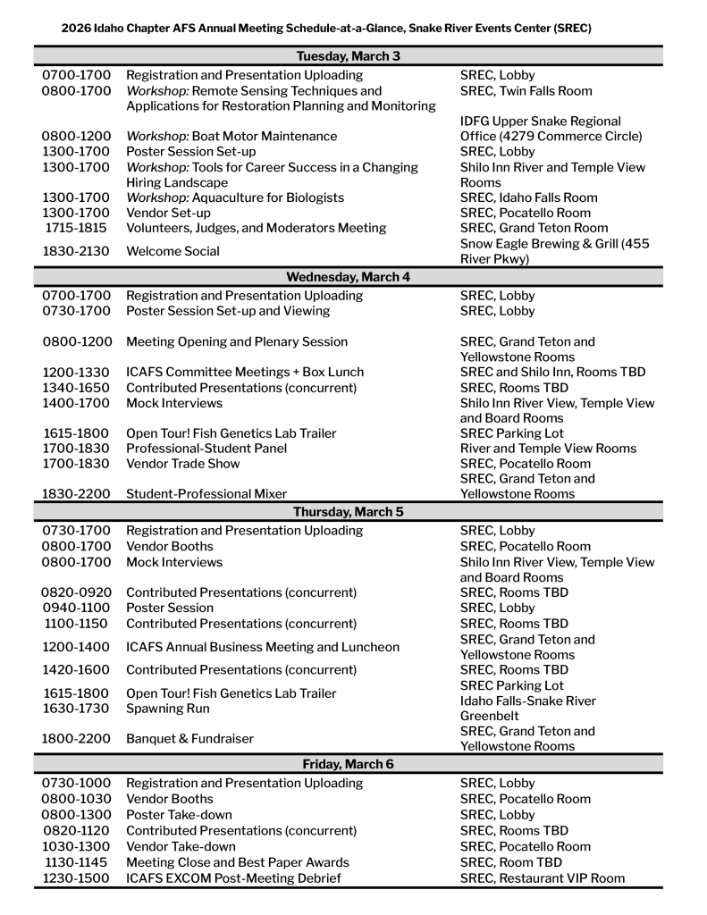Schedule 2026 Idaho Chapter AFS Annual Meeting Schedule-at-a-Glance Printable PDF of Schedule-at-a-Glance